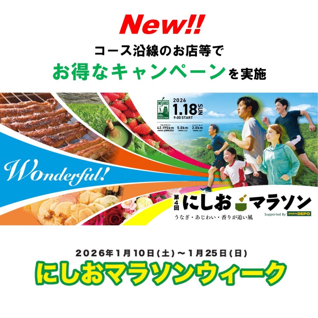 コース沿線等にある地域のお店等と連携し、お得なキャンペーンやサービスを受けられる「にしおマラソンウィーク」を開催します‼️‼️‼️